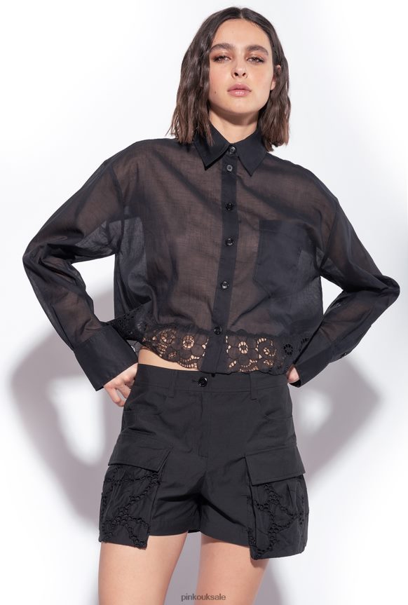 Shirts | Pinko Short muslin shirt LIMO BLACK FTB64L292 Pinko Dress Uk