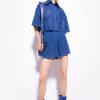 Full cotton shorts with broderie anglaise all over. High waisted with small ruches and side pockets. Zip and button fastening. – Model is 175cm tall and wears a size 40.