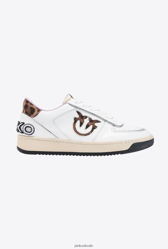Flat leather sneakers embellished with contrasting inserts. Customised with inscribed Love Birds logo on both sides and PINKO logo on the heel. 3 cm rubber box sole. Leather insole and terrycloth inner lining.