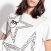 Short-sleeved cotton jersey T-shirt with printed PINKO logo comprising large stars with Love Birds in the middle. – Model is 176cm tall and wears a size 40.
