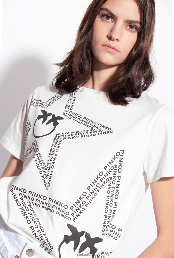 T-Shirt | Pinko T-shirt with star logo SILK WHITE FTB64L342 Pinko Bags Uk