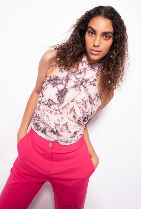Top | Pinko Asymmetric top with tattoo print NUDE/BLACK FTB64L408 Pinko Bags Uk
