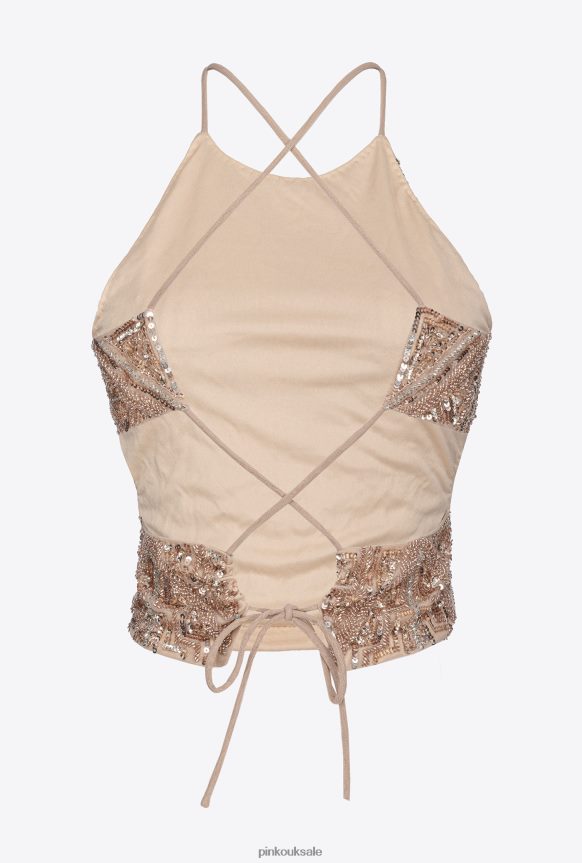 Top | Pinko Crop top with crystal mix embroidery MULTI. NUDE/SILVER/GOLD FTB64L319 Pinko Dress Uk