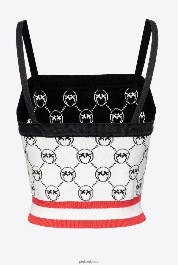 Top | Pinko Monogram jacquard crop top MULT. WHITE/BLACK/RED FTB64L420 Pinko Bags Uk