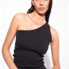Slim-fitting, sleeveless, one-shoulder top in light, rib-knit stretch cotton fabric. Customised with Love Birds embroidery in the middle at the back.