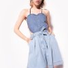 Top | Pinko Stretch linen crop top DIRECTOR BLUE FTB64L449 Pinko Uk