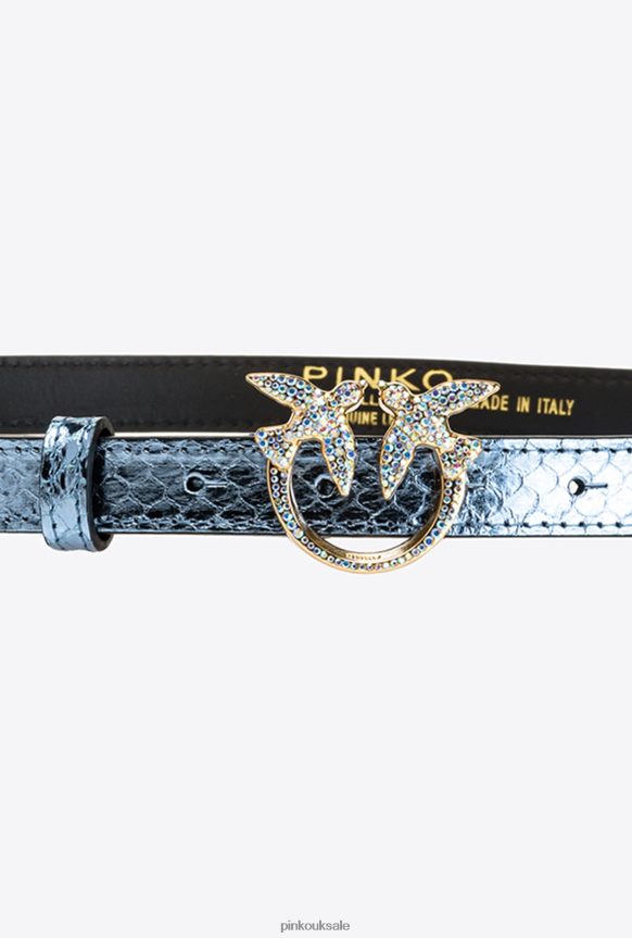 Belts | Pinko Galleria thin laminated reptile skin belt LIGHT BLUE-SHINY GOLD FTB64L1022 Pinko Uk
