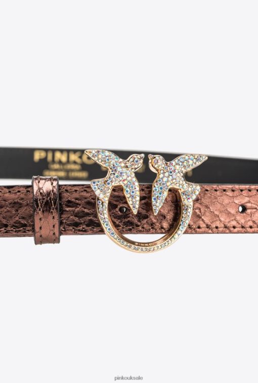 Belts | Pinko Love Birds high leather belt with jewel BLACK-ANTIQUE GOLD FTB64L970 Pinko Dress Uk
