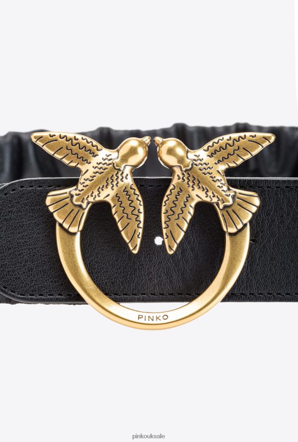 Belts | Pinko Love Birds high leather belt with jewel BLACK-ANTIQUE GOLD FTB64L970 Pinko Dress Uk