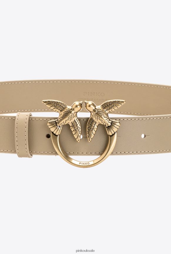 Belts | Pinko Love Birds leather belt SAND-ANTIQUE GOLD FTB64L1010 Pinko Uk