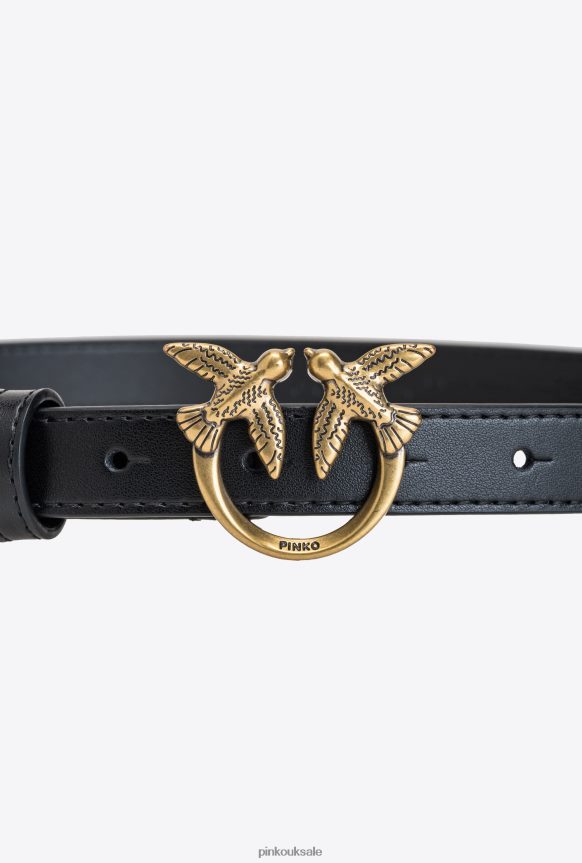 Belts | Pinko Love Birds thin leather belt BLACK-ANTIQUE GOLD FTB64L1028 Pinko Uk