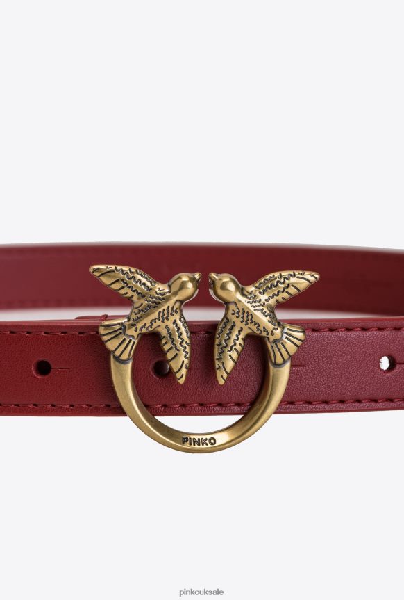 Belts | Pinko Love Birds thin leather belt RUBY RED-ANTIQUE GOLD FTB64L1027 Pinko Dress Uk