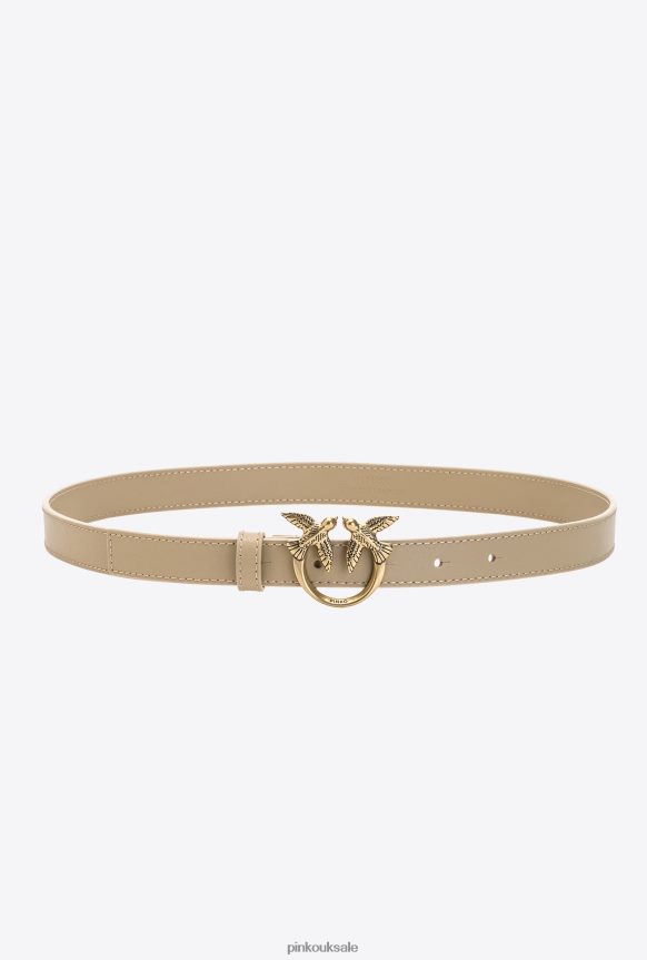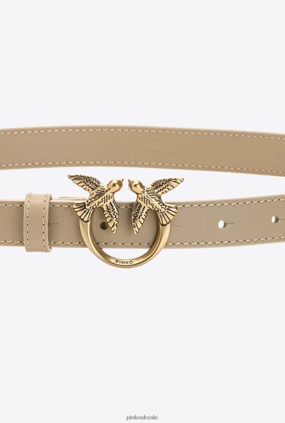 Belts | Pinko Love Birds thin leather belt SAND-ANTIQUE GOLD FTB64L1036 Pinko Dress Uk
