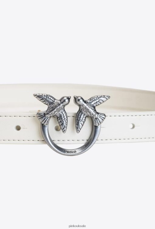 Belts | Pinko Love Birds thin leather belt WHITE-OLD SILVER FTB64L1026 Pinko Bags Uk