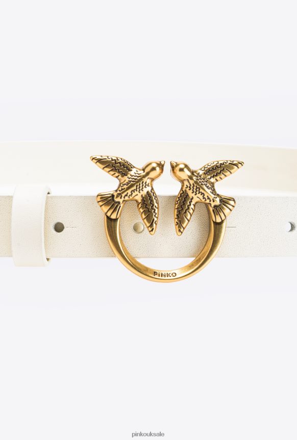 Belts | Pinko Thin Love Birds belt with studs WHITE-ANTIQUE GOLD FTB64L986 Pinko Uk