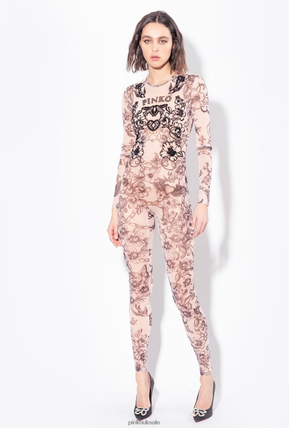 Jumpsuits and Dungarees | Pinko Tattoo-print jumpsuit with embroidery NUDE/BLACK FTB64L115 Pinko Dress Uk