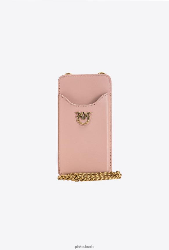 Microlove Bags | Pinko Leather smartphone holder DUSTY PINK-ANTIQUE GOLD FTB64L1243 Pinko Dress Uk