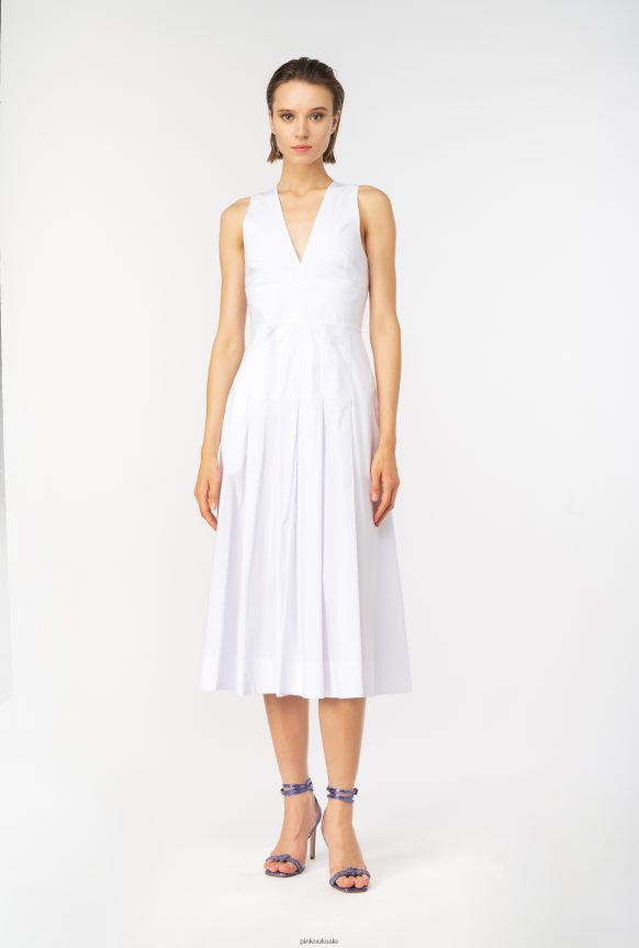 Mid-Length Dresses | Pinko Pleated poplin dress BRIGHT WHITE FTB64L46 Pinko Dress Uk