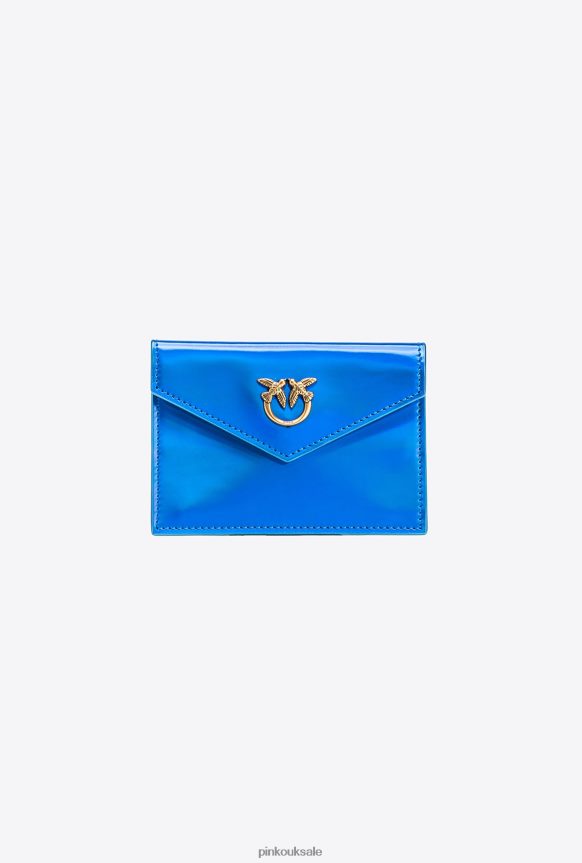 Purses | Pinko Galleria iridescent Flat card holder IRIDESCENT BLUE-ANTIQUE GOLD FTB64L1169 Pinko Uk