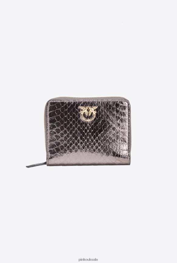 Purses | Pinko Galleria zip-around purse in laminated reptile skin GUNMETAL GREY-SHINY GOLD FTB64L1173 Pinko Bags Uk