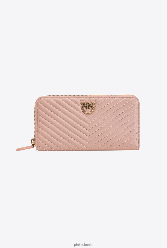 Purses | Pinko Zip-around wallet in chevron-patterned nappa DUSTY PINK-ANTIQUE GOLD FTB64L1159 Pinko Dress Uk