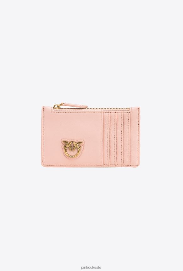 Purses | Pinko Zipped chevron-patterned card holder DUSTY PINK-ANTIQUE GOLD FTB64L1164 Pinko Bags Uk